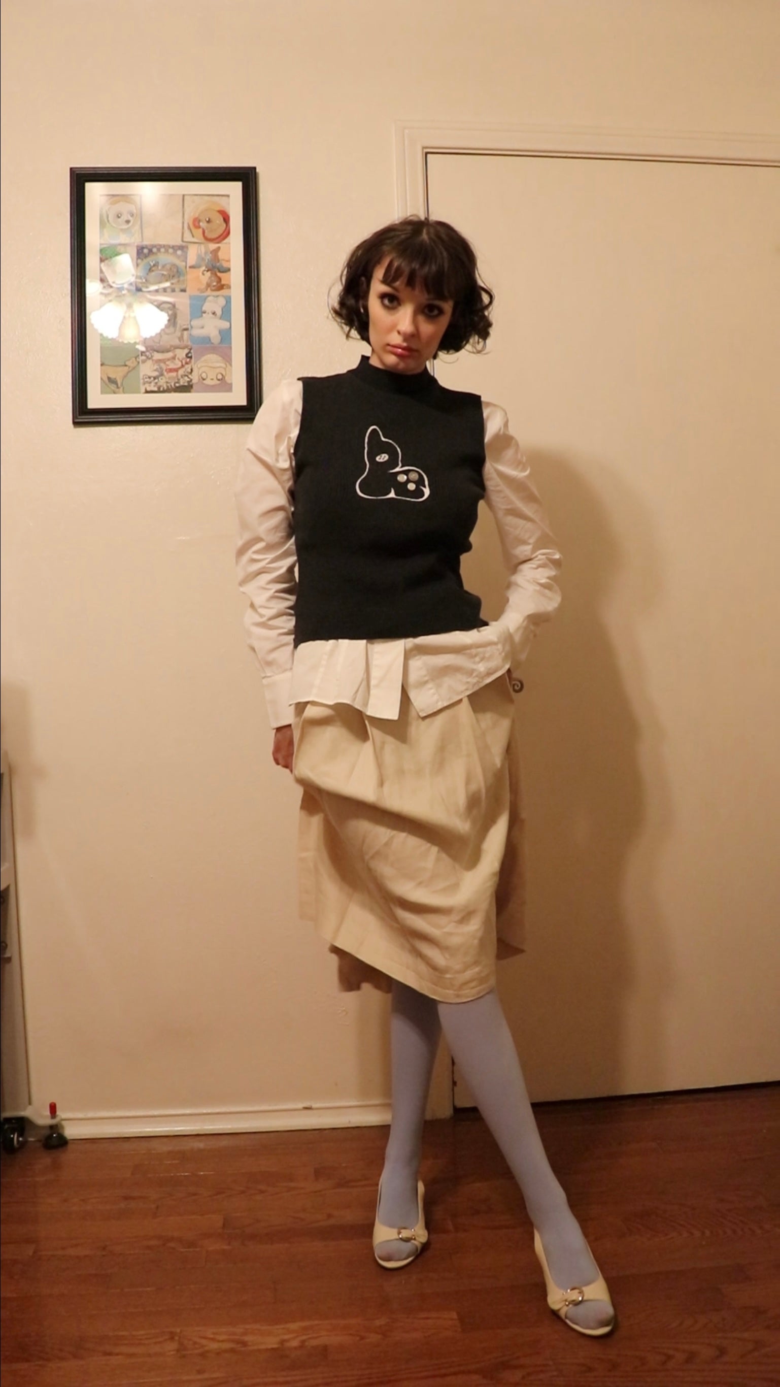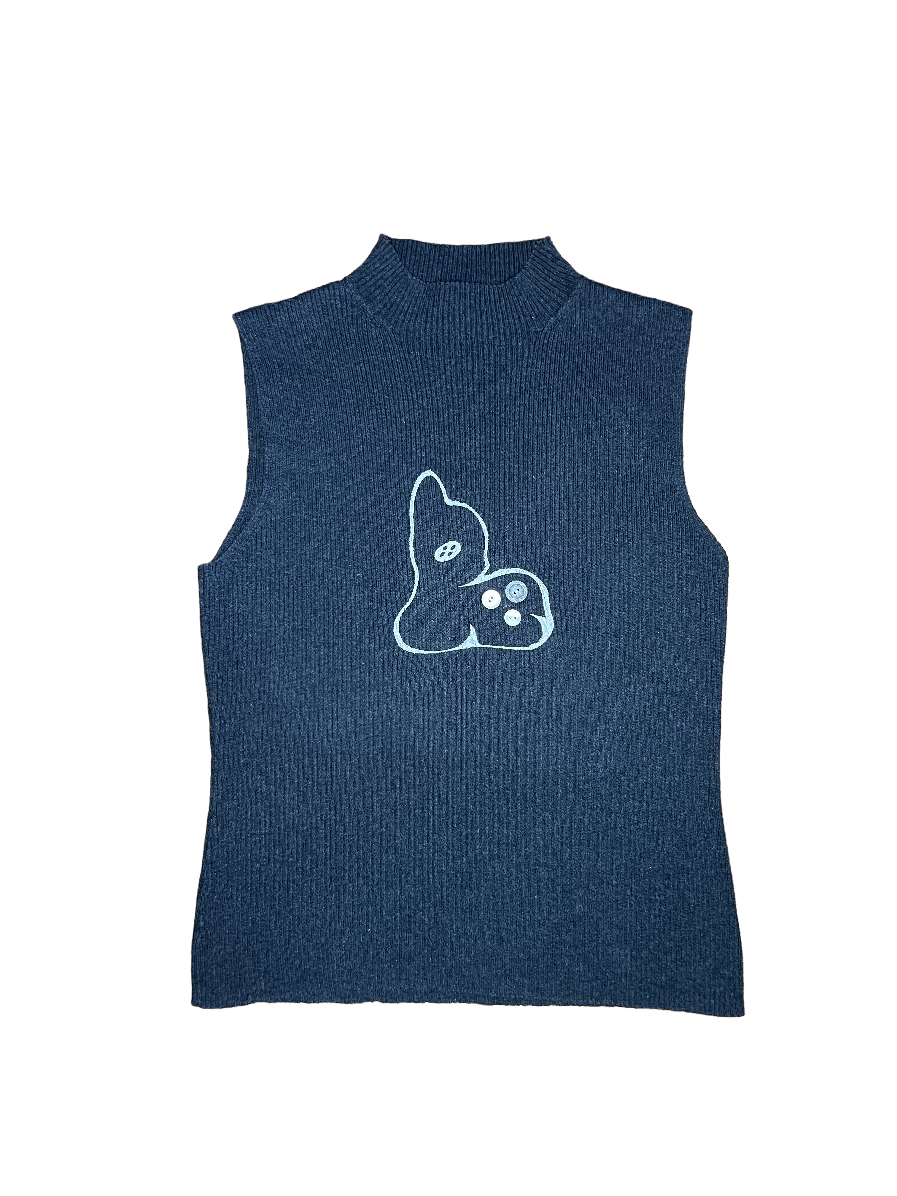 A woman's small 82% cotton, 15% nylon, 3% spandex I.N.C sweater tank that I up-cycled with my embroidered logo in the center. Each up-cycled button is hand-sewn on. Please allow 1-3 business days for production (excluding shipping)! Thank you so much for reading and checking out my art! If you want to learn more about how I source my apparel, please check out my About Bambi page.